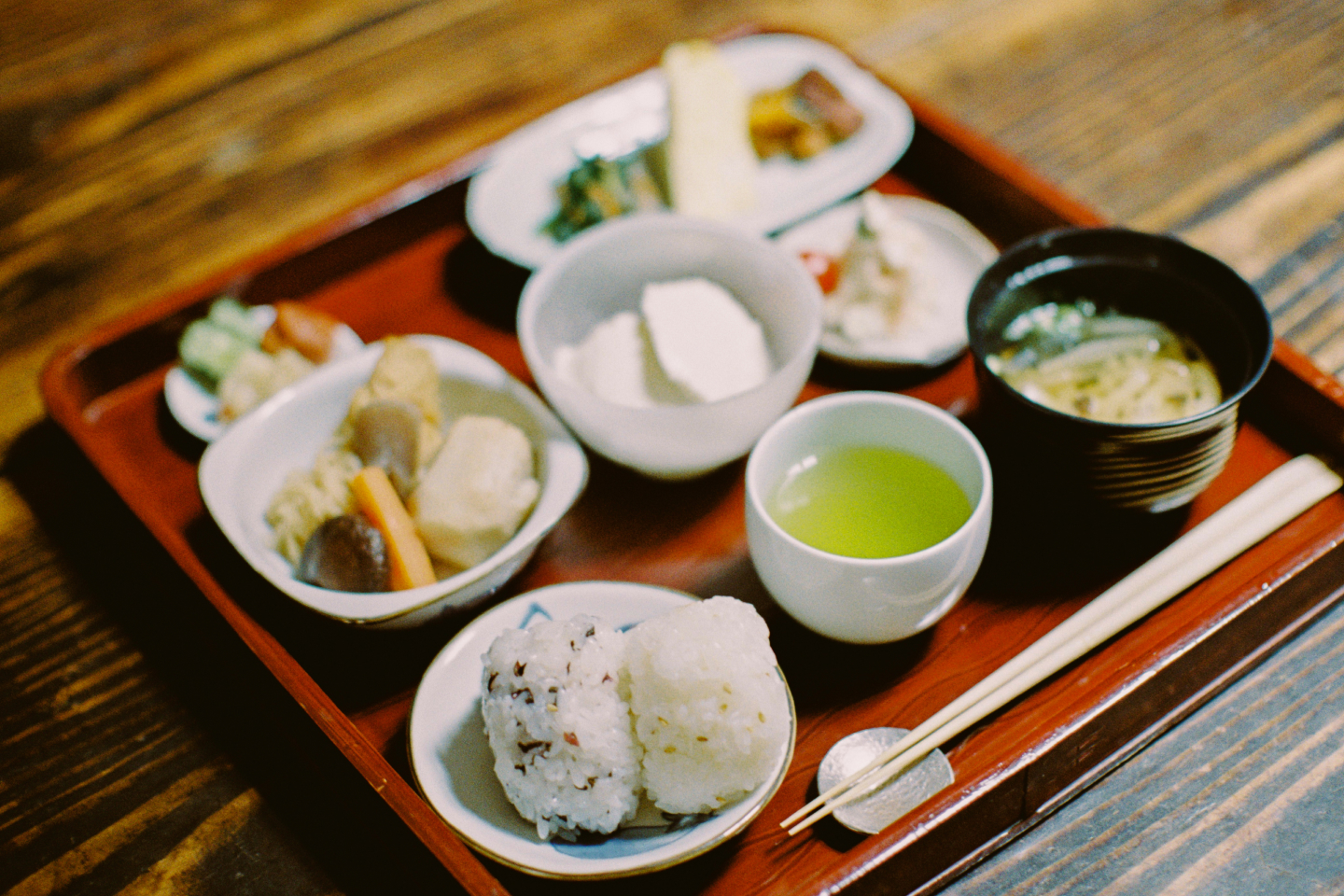 - おむすびと一緒に食べるおかずはすべて法子さん手作りの絶品郷土料理(食材の野菜や味噌も自家製)。