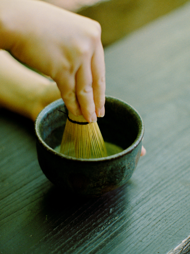 - スタッフが抹茶の立て方を軽くレクチャーします